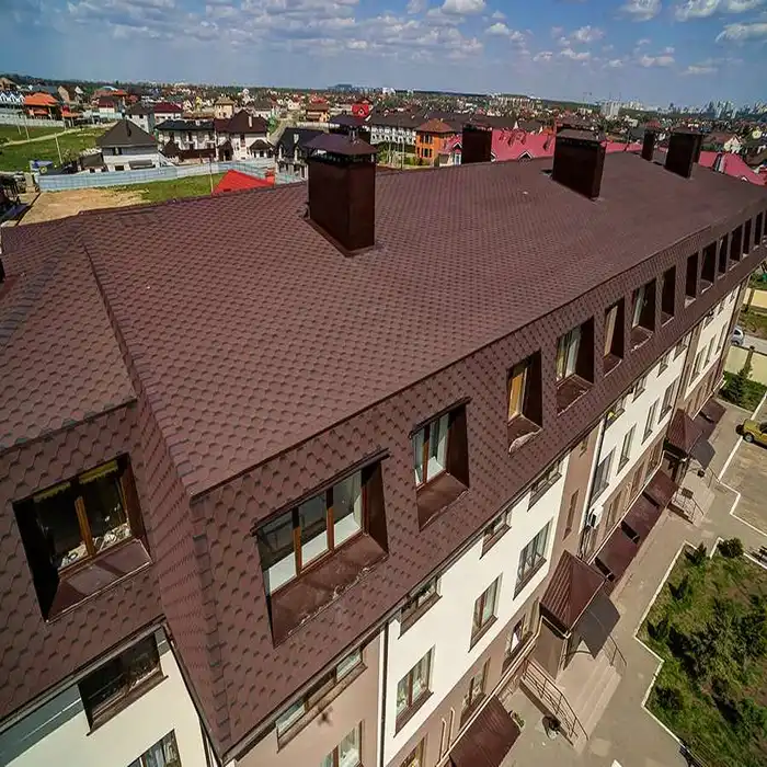 Гибкая черепица может применяться не только на малоэтажных жилых зданиях, но и при строительстве административных, жилых многоэтажных и других типов зданий.